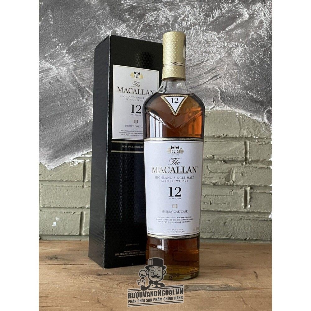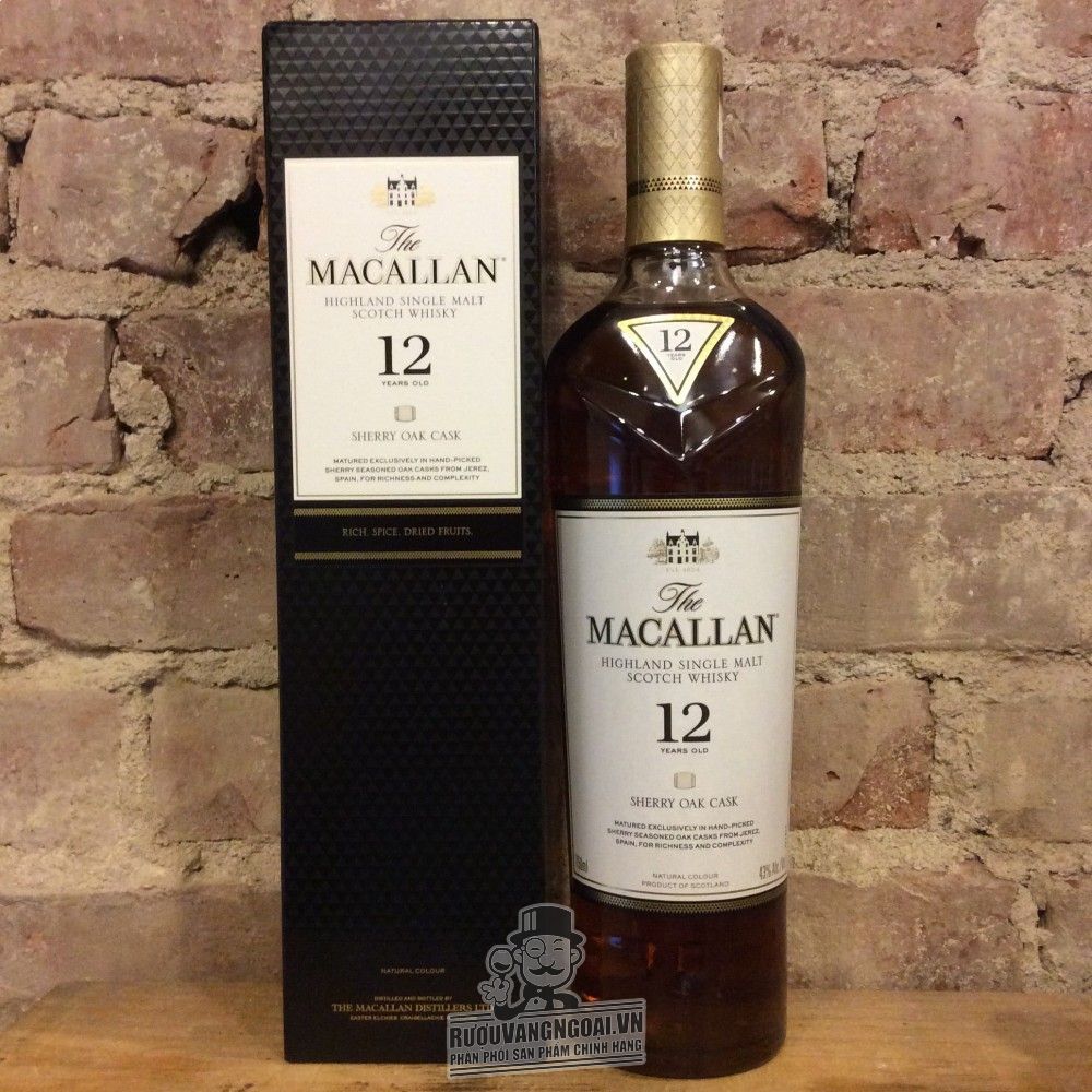 Rượu Macallan 12 Sherry Oak là chai single malt whisky chất lượng đến từ Scotland, có nồng độ 40%. Nhà Macallan thực sự sáng suốt khi tạo ra dòng whisky 12 năm tuổi này bằng cách ủ các loại mạch nha đơn cất trong thùng sồi Sherry cũ của Tây Ban Nha, từng ủ rượu sherry Oloroso - thứ mang đến vị ngọt bùi của các loại hạt, trái cây sấy khô và gia vị se cay cho rượu.