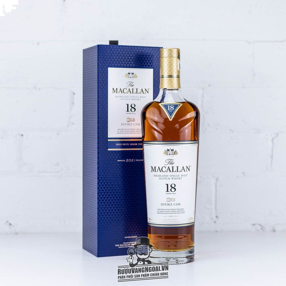Rượu Macallan 18 Double Cask là đỉnh cao của dòng sản phẩm Macallan, một tác phẩm nghệ thuật trong thế giới whisky. Hương vị ngọt ngào, ấm áp của chai rượu này bắt nguồn từ sự kết hợp tuyệt vời giữa 2 loại thùng gỗ sồi: thùng sherry từ châu Âu và Mỹ. Qua 18 năm ủ trong hai loại thùng này, Macallan tạo ra một loại single malt độc đáo, có sức hấp dẫn mãnh liệt với cả những người sành whisky khó tính nhất.