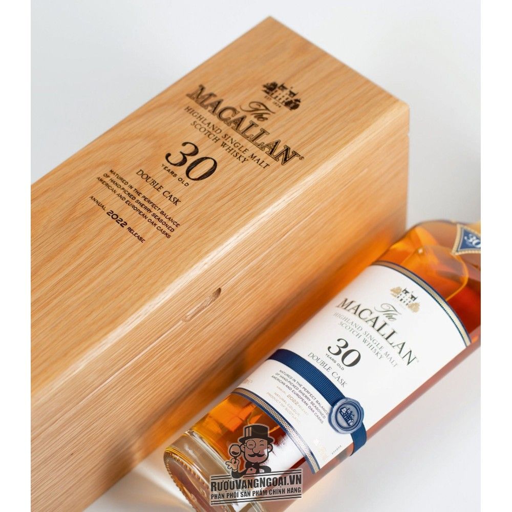Là loại rượu có tuổi đời lâu nhất trong danh mục sản phẩm của thương hiệu, Macallan 30 Double Cask mang đến sự trưởng thành trong hương vị, xứng đáng với tiếng tăm của Macallan. Dáng chai đặc trưng cùng màu sắc và hương vị ấn tượng đến từ quá trình ủ trong bộ đôi thùng gỗ sherry đã tạo nên một sức hút không thể chối từ.