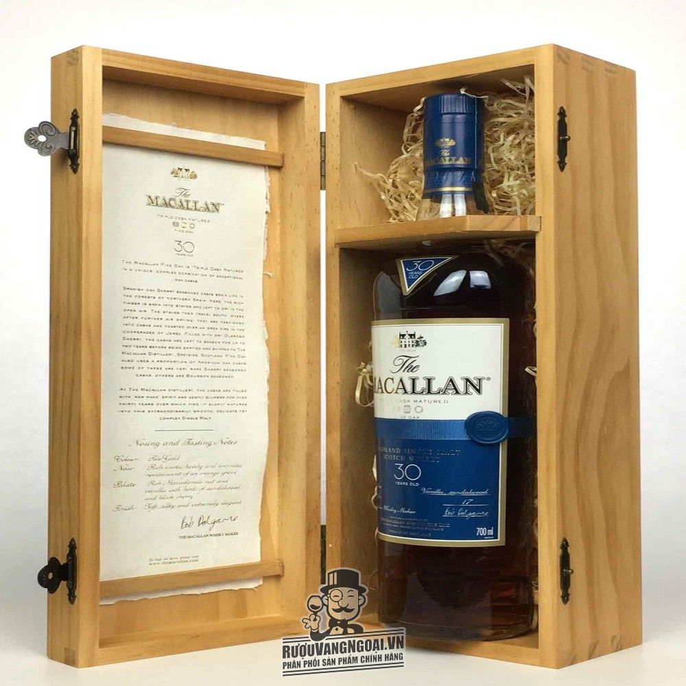 Rượu Macallan 30 là một loại single malt whisky cao cấp đến từ vùng Speyside của Scotland, được ra mắt vào năm 2004 với tên gọi Macallan 30 Fine Oak. Được ủ trong 3 loại thùng gỗ khác nhau, dòng rượu mạnh này nổi bật với hương vị phức tạp và cân bằng tuyệt vời. Năm 2018, trong chiến lược tái định vị thương hiệu, Macallan đã đổi tên bộ sưu tập Fine Oak thành Triple Cask. Do vậy, Macallan 30 Fine Oak cũng được nhắc đến nhiều hơn với cái tên Macallan 30 Triple Cask, nhấn mạnh quy trình ủ độc đáo của rượu.