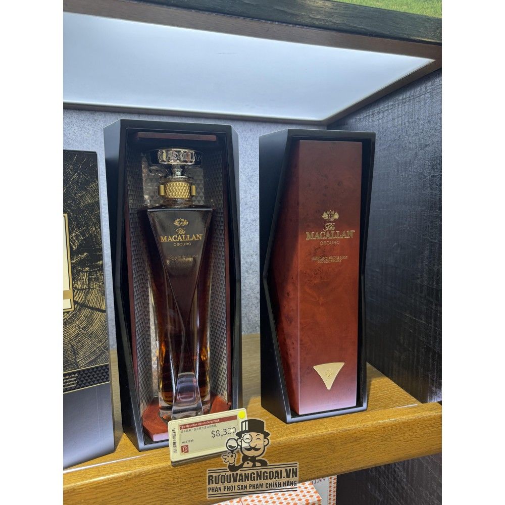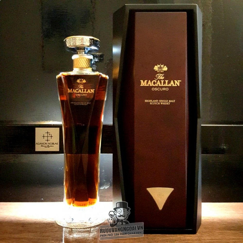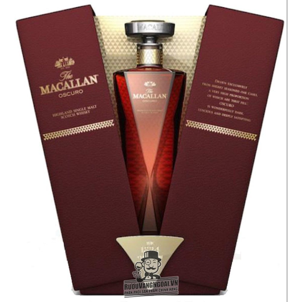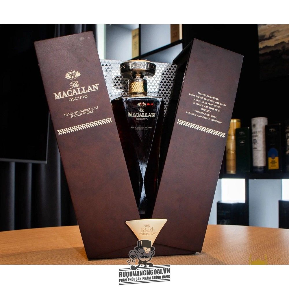 Macallan Oscuro là một trong những dòng whisky quý hiếm có thiết kế đẹp nhất mọi thời đại. Được lấy cảm hứng từ loại rượu sherry ủ sồi di sản với hương vị đậm đà đặc trưng, tên gọi "Oscuro" của chai whisky này có nghĩa là "đen tối" trong tiếng Tây Ban Nha. Macallan Oscuro 1824 Collection ra đời từ sự kết hợp của 2 loại rượu single malt whisky năm 1987 và 1997, về mặt kỹ thuật, loại rượu này có tuổi đời khoảng 25-30 năm. Đặc biệt, đây là chai whisky Macallan duy nhất được ủ trong thùng gỗ sồi ngâm rượu Oloroso Sherry với tỉ lệ cao, tạo nên màu sắc đậm đà và hương vị mạnh mẽ đặc trưng.