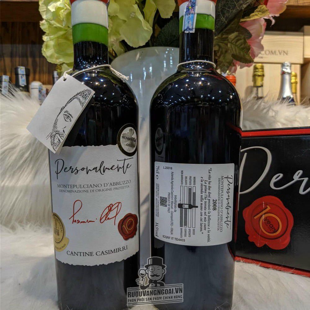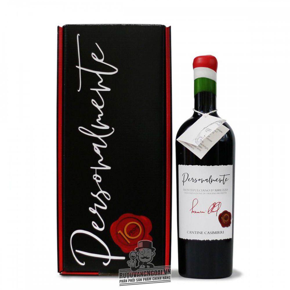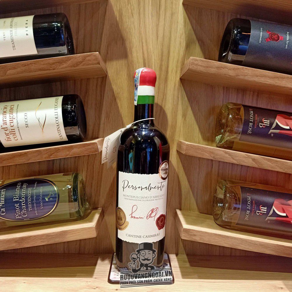Dòng Vang đỏ là một trong những chai vang thượng hạng. Rượu Vang đỏ Ý PERSONALMENTE Montepulciano DAbruzzo cao cấp là chai rượu vang nho phù hợp các bữa tiệc sang trọng. Xuất xứ từ Cantine Casimirri tại , Ý. Dung tích 750ml với nồng độ 14.5% dễ thưởng thức.