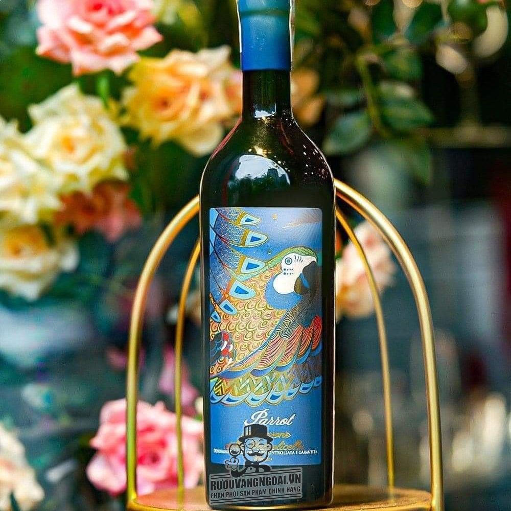 Rượu vang Ý Parrot Amarone Classico Montigoli được thiết kế theo tông màu chủ đạo là xanh nước biển. Chúng khiến cho người nhìn thích thú với hình ảnh một chú chim màu sắc cùng đôi cánh rộng lớn của mình. Từ phong cách phối màu cho đến các đường nét mô tả đều gợi đến cho chúng ta một cách nhìn rất “phương Đông”. Chim chóc vốn là biểu tượng của sự tự do, hòa bình và tình yêu bền vững. Có thể đây là thông điệp mà nhà Tedeschi muốn gửi gắm đến thực khách của mình.
