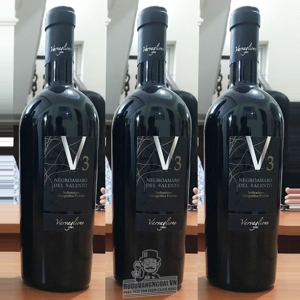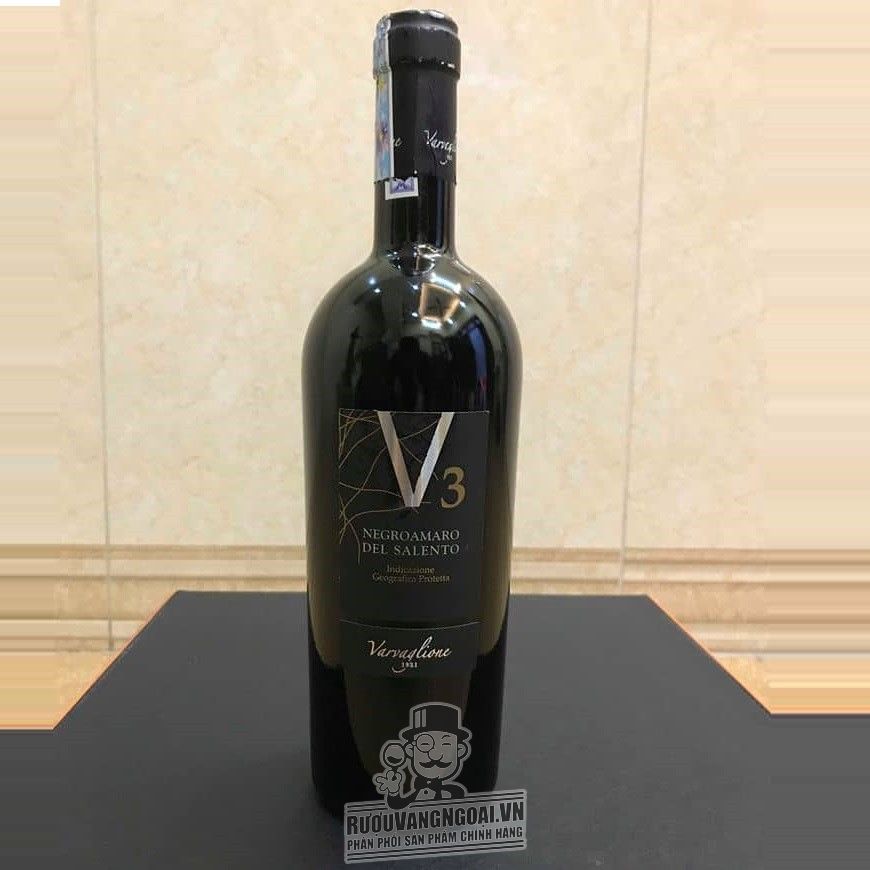 Vang đỏ này hướng đến sự tinh tế trong hương vị cũng như thiết kế. Rượu Vang Ý V3 NEGROAMARO DEL SALENTO là chai vang nho phù hợp các bữa tiệc sang trọng cũng như trong gia đình. Phân hạng IGP góp phần nâng cao chất lượng tổng thể. Được chọn lọc từ giống nho Negroamaro hảo hạng. Được sản xuất bở Varvaglione tại vùng , Ý. Dung tích 750ml với nồng độ 14% phù hợp cho tất cả mọi người. Quy cách 6ch/thùng phù hợp làm quà tặng.