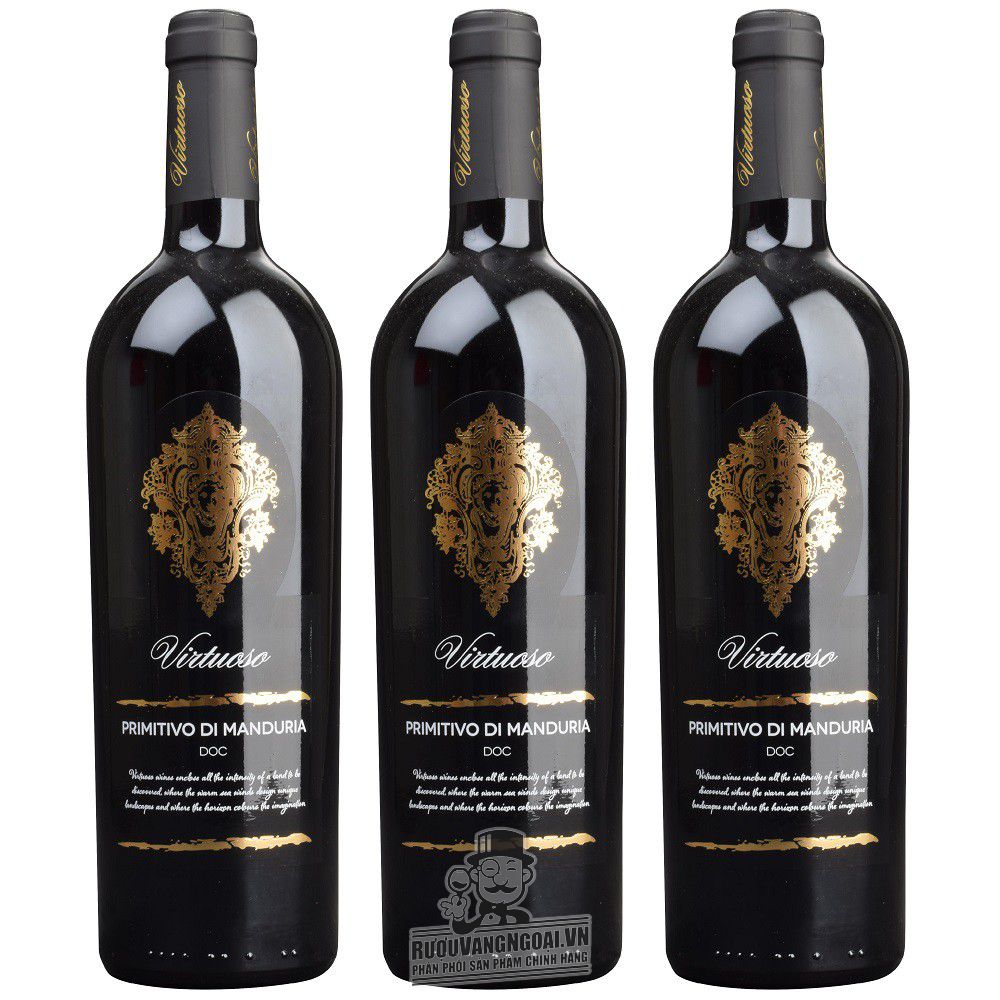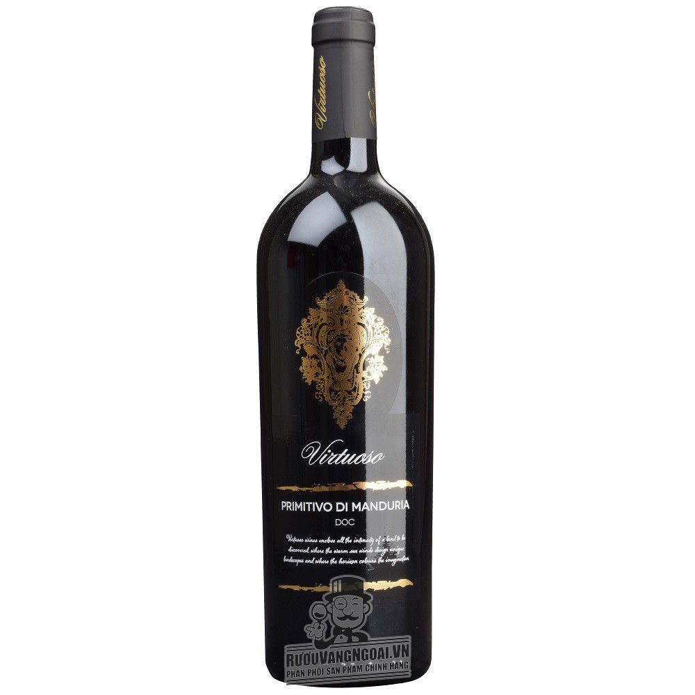 Rượu vang Ý Virtuoso Primitivo di Manduria được làm từ 100% giống nho Primitivo. Nho thường được thu hoạch bằng tay vào đầu tháng 9 trong năm. Vùng Puglia thường sản xuất rượu vang đỏ đậm đặc và mạnh mẽ mang màu sắc mới mẻ đến cho những ai thích sự sáng tạo trong khi thưởng thức.