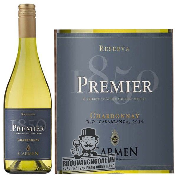Dòng Vang trắng là một trong những chai vang thượng hạng. Vang Chile CARMEN PREMIER 1850 RESERVA CHARDONNAY là chai rượu vang nho phù hợp các bữa tiệc sang trọng. Sử dụng giống nho Chardonnay làm nền hương vị. Phân hạng Reserva giúp rượu đạt chất lượng tốt nhất. Xuất xứ từ CARMEN tại , Chile. Dung tích 750ml với nồng độ 13% dễ thưởng thức.