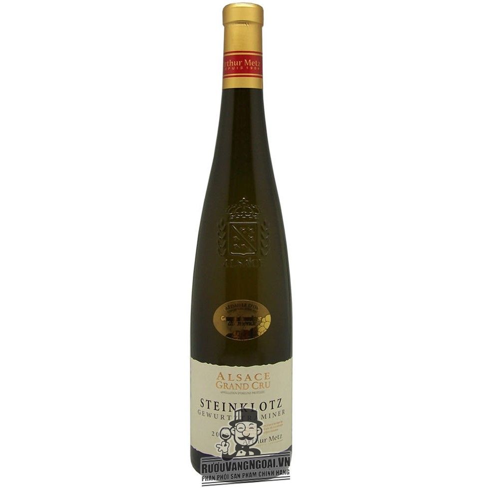Arthur Metz Steinklotz Grand Cru – Gewurztraminer được lên men từ 100% nho Gewurztraminer nổi tiếng từ vùng Alsace, rượu có màu vàng với sắc vàng kim loại (vàng gold) rất đẹp. Rượu có mùi rất thơm, hương thơm rất hài hòa, với các ghi chú hương vị nhẹ của hương liệu (như hương vị quế, cây đinh hương). Thưởng thức rượu cho cấu trúc rất cân bằng và tuyệt với, sự tương phản của axit tự nhiên làm nổi bật ghi chú của mùi hương của hoa hồng và hương liệu ở mũi.