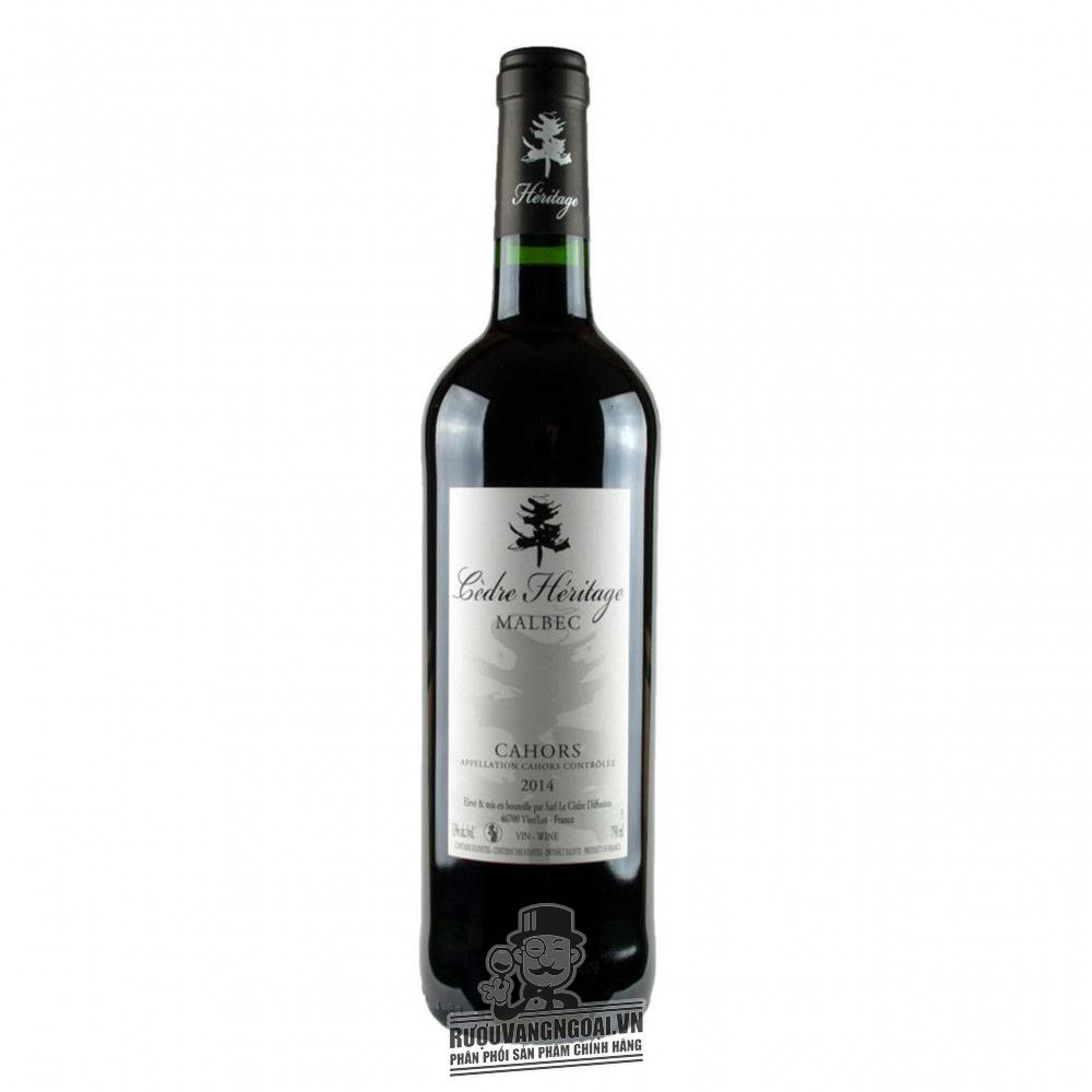 Vang Pháp Cedre Heritage Malbec Cahors thượng hạng là một trong những chai vang được đánh giá xuất sắc về hương vị cùng với phong cách tinh tế. Thuộc dòng Vang đỏ. Nguyên liệu chính là giống nho Malbec được tuyển chọn kỹ lưỡng. Sản xuất bởi Accent & Terroir tại vùng , Pháp. Dung tích 750ml kết hợp nồng độ 14% tạo sự cân bằng khi thưởng thức.
