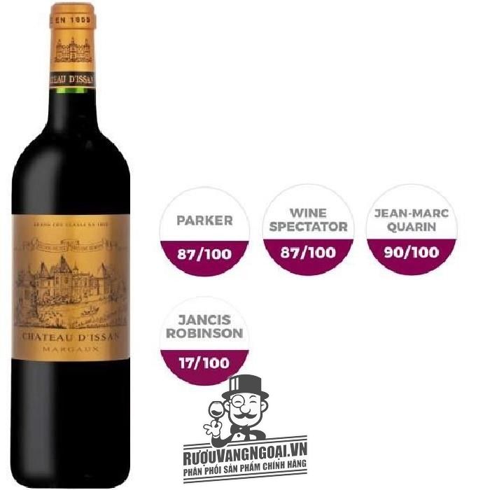 Rượu ngoại nhập khẩu tự hào là đối tác cung cấp quà tặng rượu vang dành cho doanh nghiệp hàng đầu tại Việt Nam. Chuyên rượu vang nhập khẩu chính hãng ship hàng tận nơi, mang lại cho quý khách những chai vang nhập khẩu chính hãng. Quý vị đang khám phá mua rượu vang xuất hóa đơn thì ruouvangngoai.vn chính là lựa chọn tuyệt vời dành cho bạn. Với hương vị vang thanh tao Vang Pháp CHATEAU D‘ISSAN MARGAUX là sự pha trộn hoàn hảo của những loại nho Merlot - Cabernet Sauvignon - Cabernet Franc chất lượng tốt nhất được chọn lọc tỉ mỉ từ những nơi sản xuất rượu vang Bordeaux trứ danh của thế giới, mỗi chai vang mang trong mình một câu chuyện về sự tinh khiết của thiên nhiên, mang lại cho thực khách cảm nhận khó quên. Vang Pháp CHATEAU D‘ISSAN MARGAUX chính là chọn lựa số 1 dành cho quý khách, trong những dịp đặc biệt như tiệc tùng cùng khách hàng. Hiện tại loại vang này đang được bán với mức giá ưu đãi chỉ còn 2.980.000 VNĐ, kèm theo khuyến mãi đặc biệt tặng kèm dụng cụ mở rượu với đơn hàng từ 3 chai trở lên, cùng với chính sách mua 3 tặng 1 vô cùng hấp dẫn cho mọi đơn hàng, hãy liên hệ 0983852992 để mua với giá ưu đãi nhất. Ruouvangngoai.vn cam kết mang đến cho quý khách những chai rượu thượng hạng với mức giá rẻ hơn so với các nơi khác. Ngoài ra khoruouvang còn có các chương trình khuyến mại cực sốc, giúp bạn mua được các sản phẩm tốt nhất với giá cực rẻ.