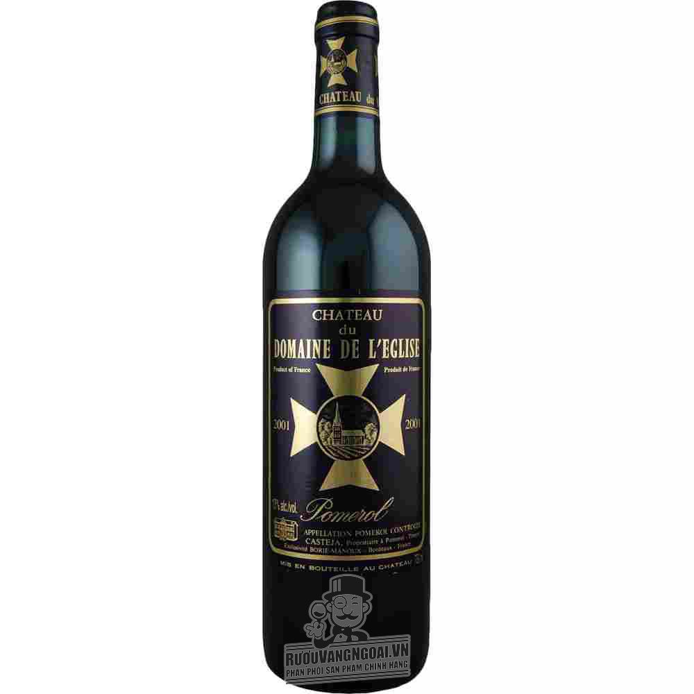 Rượu vang Chateau du Domaine de l Eglise là một chai vang đỏ rất ngon và cũng khá nổi tiếng. Mặc dù nó cũng mới xuất hiện gần đây. Hai giống nho chính được phối hợp để làm ra nó là nho Merlot - Cabernet Franc. Một rượu vang sản xuất năm 2013 bằng giống nho ở cùng Pomerol. Nhìn chung, rượu vang Pháp Chateau du Domaine de L'Eglise khá thanh lịch. Nó không phải là một chai rượu quá mạnh mẽ hay có cá tính đặc biệt ấn tượng.