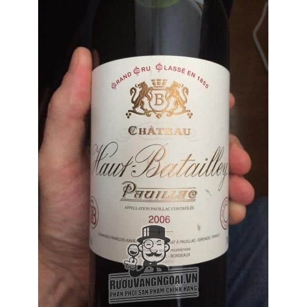 Ruouvangngoai tin tưởng là đối tác phân phối quà tặng rượu vang dành cho quý vị uy tín tại Việt Nam. Chuyên các loại vang với giá ưu đãi ship hàng tận nơi, mang lại cho quý khách hàng những chai rượu nhập khẩu chính hãng. Quý khách đang muốn sưu tầm quà tặng đối tác cao cấp thì chúng tôi chính là lựa chọn tuyệt vời dành cho bạn. Chất vị hoàn hảo Vang Pháp Chateau Haut Batailley 2013 là sự pha trộn tài tình của những loại nho Cabernet Sauvignon - Merlot chất lượng tốt nhất được chọn lọc tỉ mỉ từ những nơi sản xuất rượu Pauillac trứ danh của thế giới, mỗi sản phẩm đem đến một câu chuyện về sự tinh khiết của thiên nhiên, mang lại cho thực khách cảm nhận đáng nhớ. Vang Pháp Chateau Haut Batailley 2013 chính là chọn lựa hoàn hảo dành cho quý khách, trong những dịp đặc biệt như những buổi tối sang trọng cùng bạn bè. Ngay lúc này chai vang này đang bán với giá ưu tiên đặc biệt chỉ còn 1.850.000 VNĐ, đặt hàng ngay để nhận khuyến mãi đặc biệt tặng kèm dụng cụ mở nắp rượu với đơn hàng từ 3 chai trở lên, cùng với chính sách mua 3 tặng 1 mà không ở đâu có cho mọi đơn hàng, hãy gọi ngay 0983852992 để mua với giá rẻ. Ruouvangngoai cam kết đem lại cho quý khách những chai rượu thượng hạng với mức giá cạnh tranh hơn so với các cửa hàng khác. Ngoài ra ruouvangngoai còn có các chương trình sale cực sốc, giúp bạn mua được các sản phẩm tốt nhất với giá rẻ nhất.