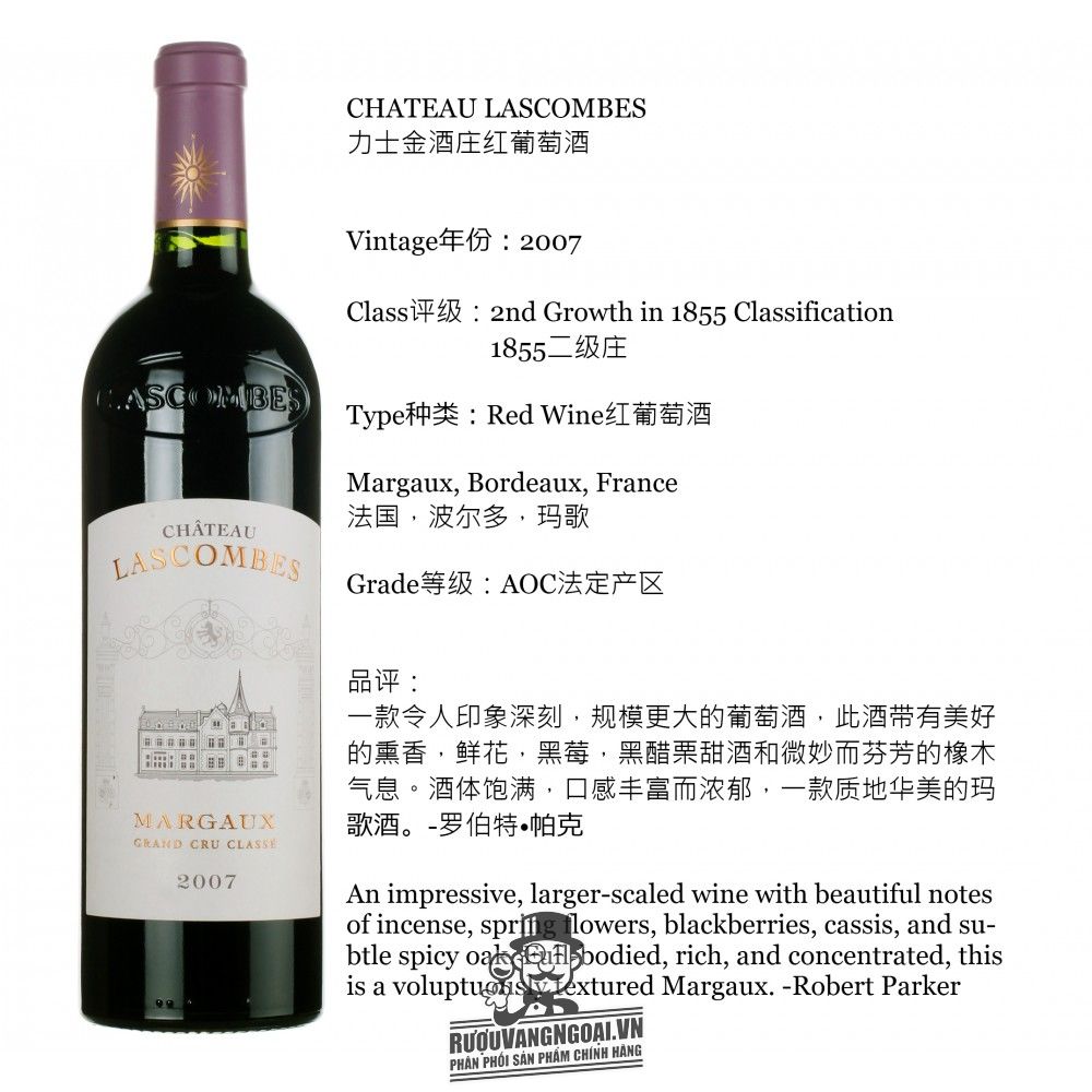 Địa chỉ bán rượu vang Vang Pháp Chateau Lascombes Margaux Grand Cru 2007 giá rẻ nhất
