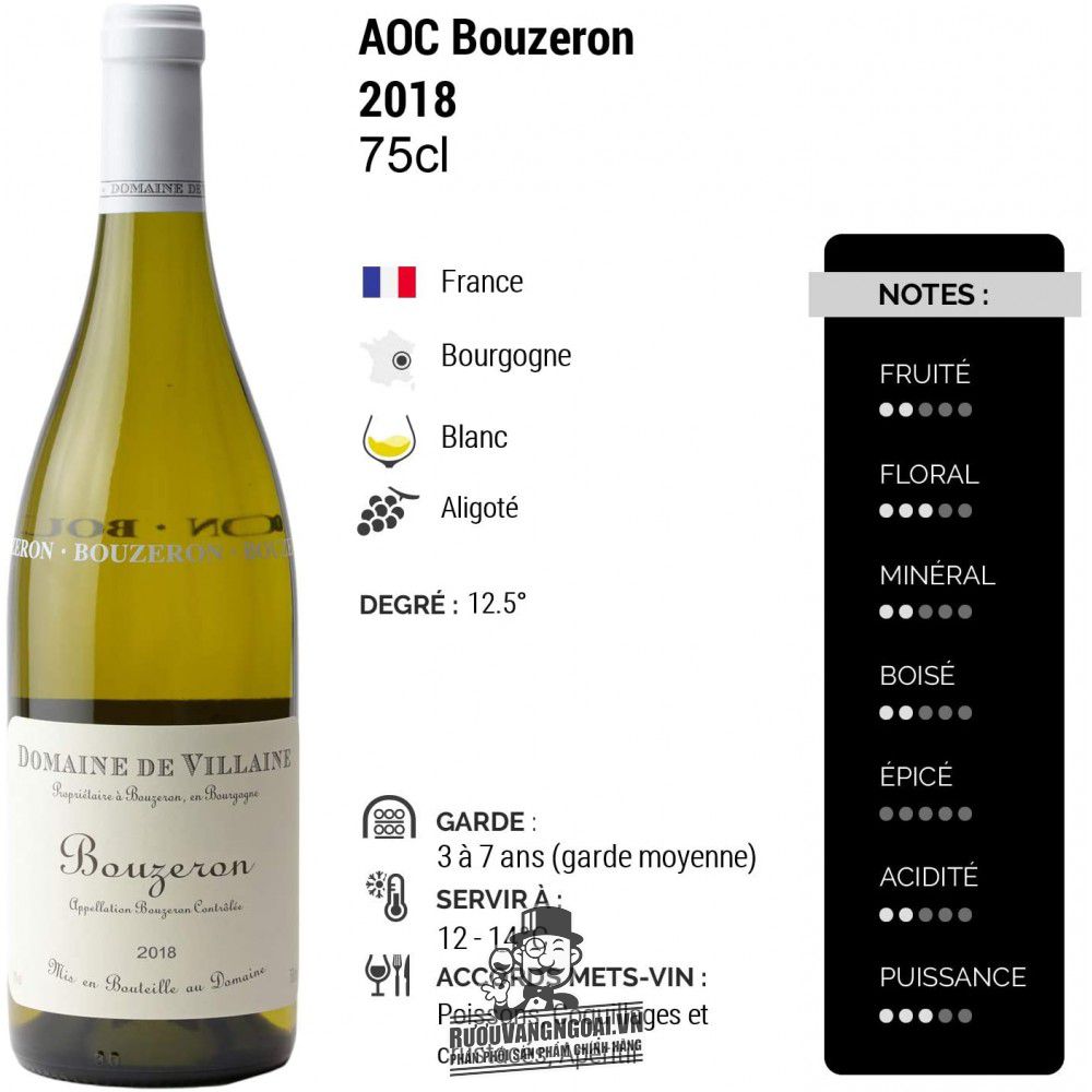 Dòng rượu vang trắng Domaine A Et P de Villaine Bouzeron Aligote được làm hoàn toàn từ những trái nho màu xanh lá của vùng Bourgogne nước Pháp. Vẻ đẹp của rượu vang được hình thành từ nét đẹp khô cứng của những trái vang trắng cao cấp.