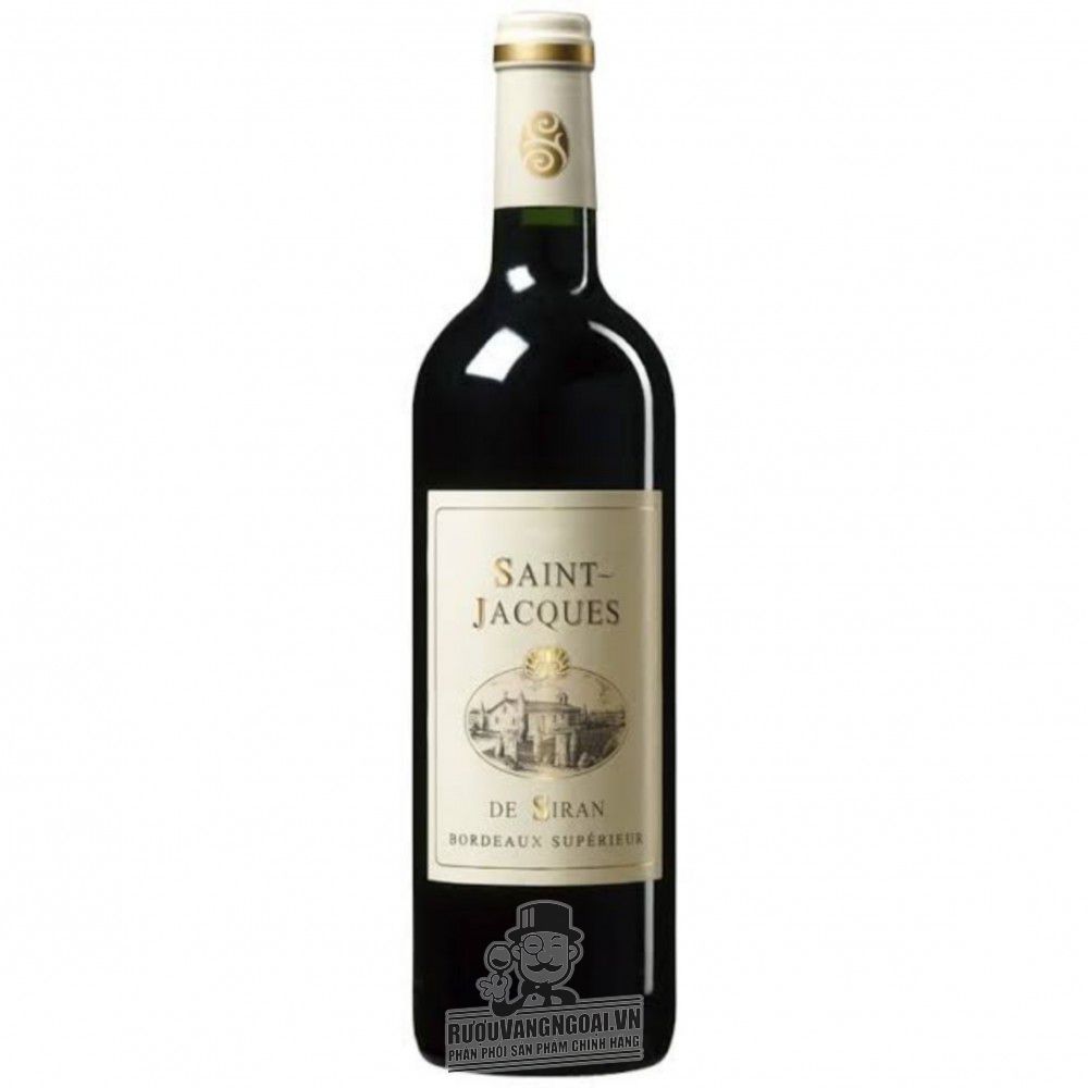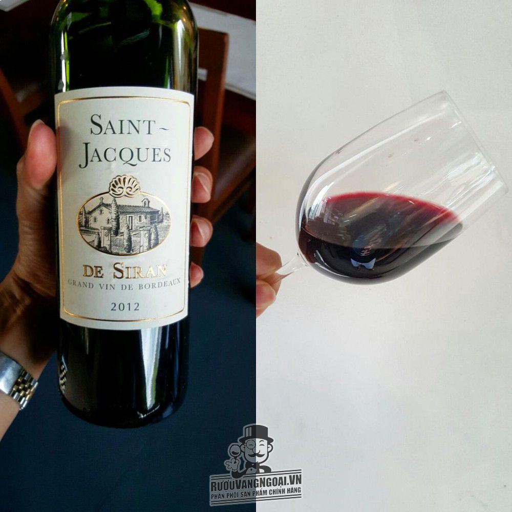 Vang Pháp Saint Jacques de Siran uống ngon là chai Vang đỏ thể hiện rõ nét cá tính của vùng – Pháp. Giống nho Cabernet Sauvignon - Merlot - Cabernet Franc mang đến mùi hương phong phú, vị tròn đầy và cấu trúc cân đối. Với nồng độ 14%, rượu thích hợp cho nhiều dịp thưởng thức. Kết hợp hoàn hảo với bò nướng, cừu, các món hầm đậm vị, chai 750ml.