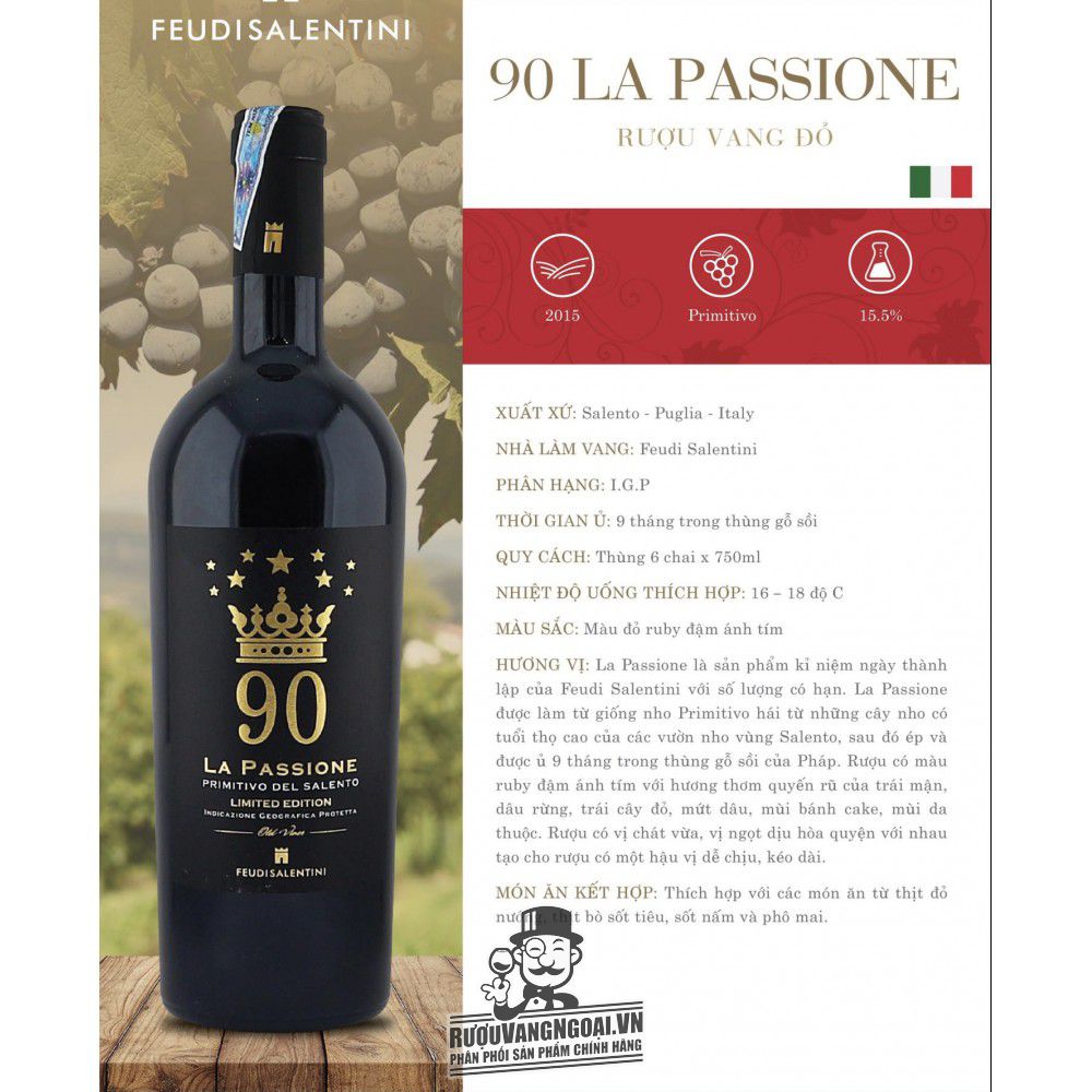 Rượu Vang Ý 90 La Passione Primitivo Del Salento mua ở đâu giá rẻ nhất