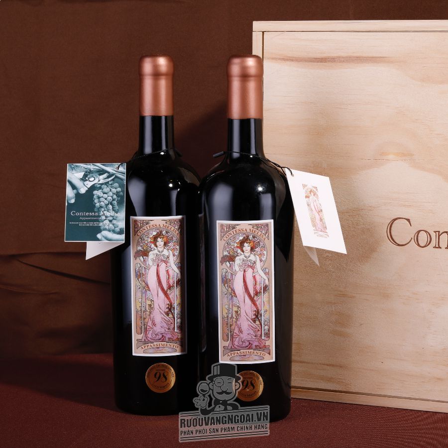 Phương pháp lên men của chai vang in hình cô gái Contessa Melisa Appassimento
