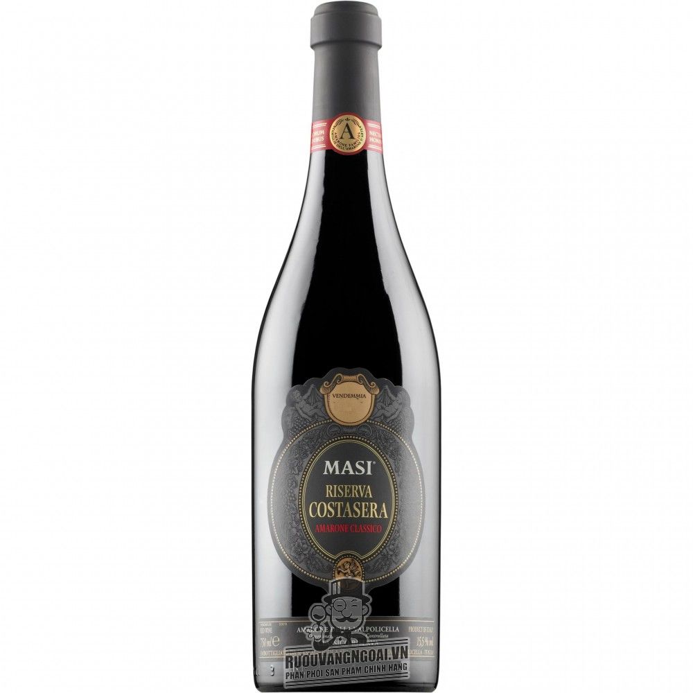 Vang đỏ này hướng đến sự tinh tế trong hương vị cũng như thiết kế. Vang Ý Masi Riserva di Costasera Thượng hạng là chai vang nho phù hợp các bữa tiệc sang trọng cũng như trong gia đình. Phân hạng DOCG góp phần nâng cao chất lượng tổng thể. Được chọn lọc từ giống nho CorvinaCorvina - Corvinone - Rondinella hảo hạng. Được sản xuất bở tại vùng , Ý. Dung tích 750ml với nồng độ 15% phù hợp cho tất cả mọi người.