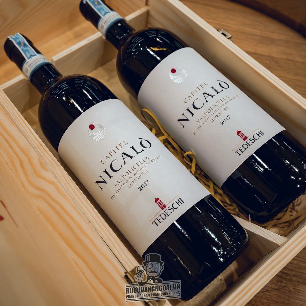 Được sản xuất bởi Tedeschi, Vang Ý Nicalo Capitel Tedeschi Valpolicella DOC là dòng Vang đỏ DOC mang phong cách thanh lịch. Nho Corvina - Corvinone - Rondinella - Rossignola từ , Ý tạo nên hương vị hài hòa, hậu vị kéo dài và dễ ghi nhớ. Nồng độ 14% giúp rượu giữ được sự cân bằng khi thưởng thức. Phù hợp dùng cùng thịt đỏ, đồ nướng, phô mai cứng, dung tích 750ml.