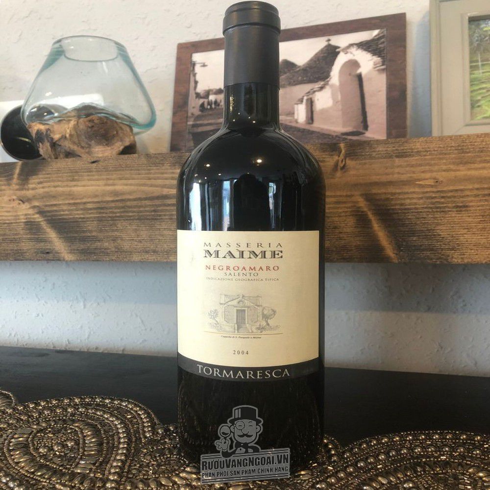 Rượu vang có màu đỏ ruby mãnh liệt nhờ quá trình trưởng thành sau thời gian ngâm ủ lâu dài. Tormaresca Masseria Maime Salento chứa nét đẹp đặc trưng của hoa hồng, anh đào đen kết hợp với hương thơm của cam thảo, quế và đinh hương. Dư vị rượu ngọt ngào, cấu trúc cân bằng cùng một kết thúc êm ái đáng mong đợi. Chất rượu khô tuyệt vời đáng để thưởng thức một lần trong đời.